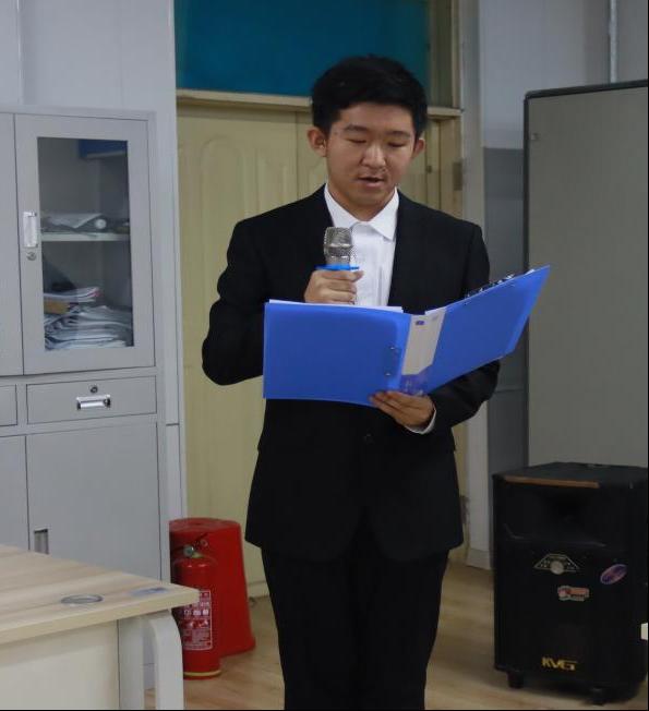 学员代表孙相瑞上台发言,感谢学院为实验班提供优质教学资源和专业教师团队,助力学员提升能力、攻克困难。他以“孩儿立志出乡关,学不成名誓不还”明志,承诺全体学员将在实验班明确人生目标、养成良好学习习惯、完善知识框架,顺应时代趋势,不负学院期望。