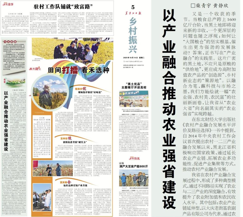 近日,我校管理学院龙江产业振兴研究团队成员柴青宇副教授撰写的《以农村产业融合发展推动我省农业强省建设》一文,在省级权威媒体《黑龙江日报》刊发。该成果是团队长期深耕农业经济管理领域的重要突破,不仅彰显了团队的科研实力,更以高质量的智力成果为龙江农业强省建设提供了实践路径,充分体现了我校服务地方产业发展的责任担当。