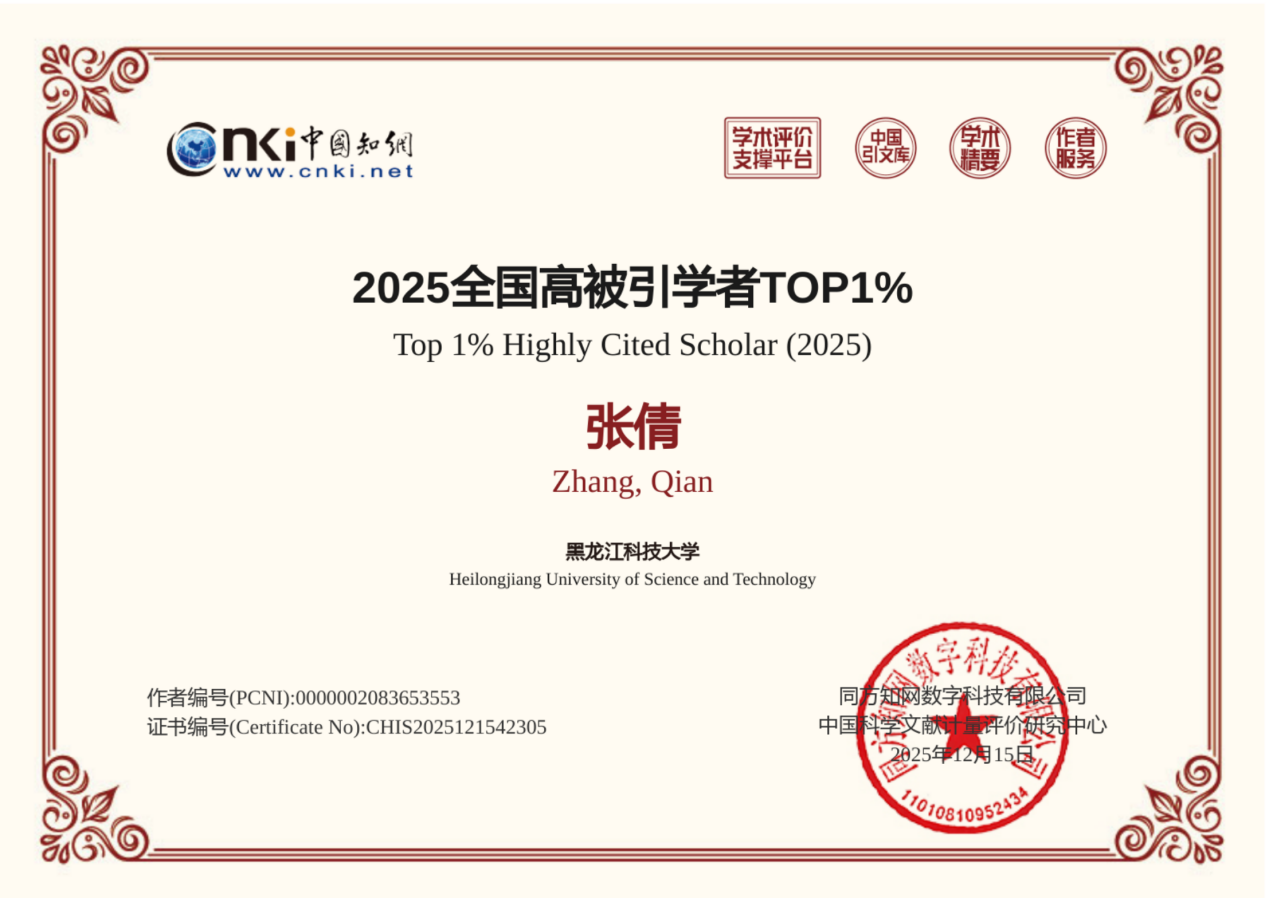近日,中国知网发布了“2025中国知网高被引学者”名单,张倩教授继入选“2024中国知网高被引学者TOP1%”榜单之后,再次入选工商管理(含专业学位)学科“2025中国知网高被引学者TOP1%”榜单。