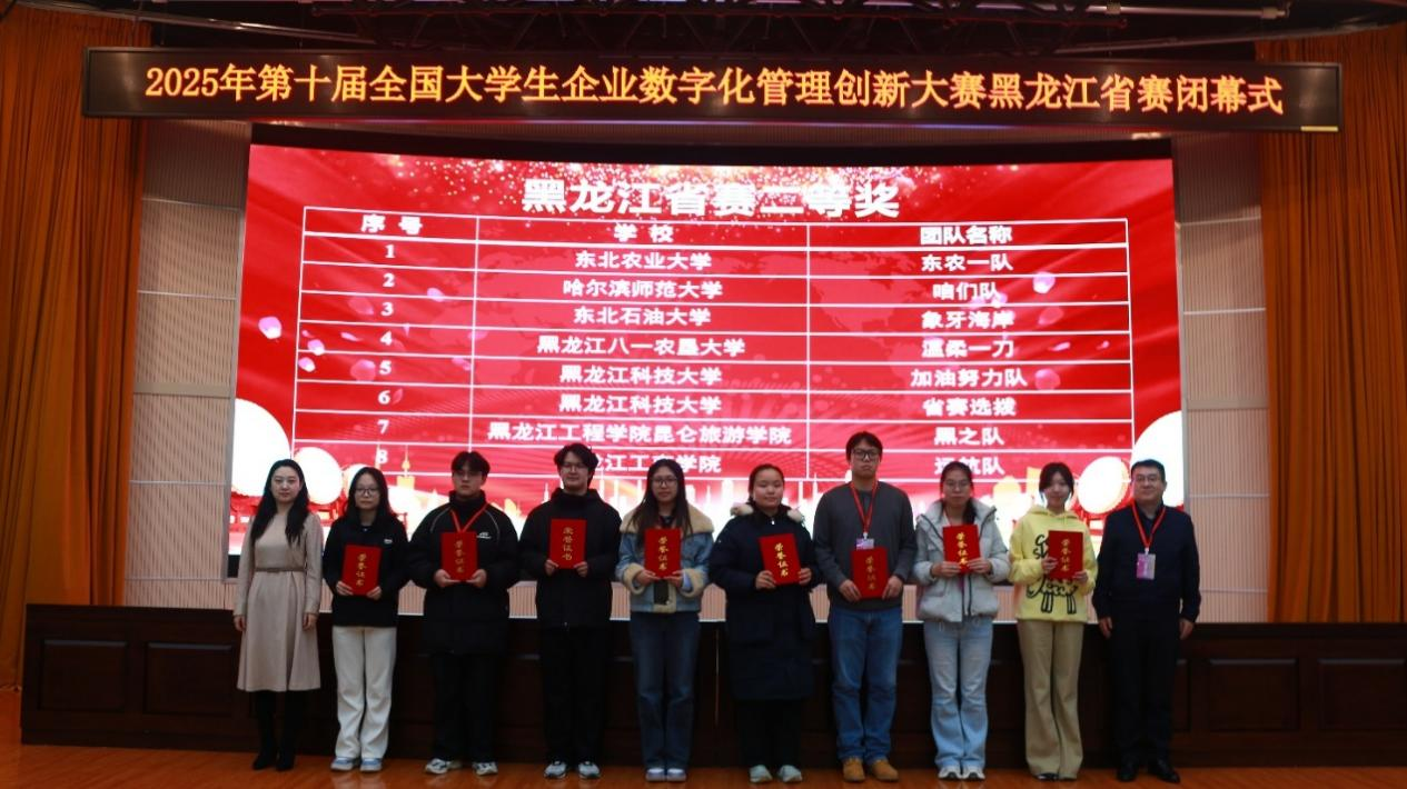 全国大学生企业数字化管理创新大赛自2016年启动以来,已成功举办九届,累计吸引全国高校近万支队伍、数万名师生参加,成为国内颇具影响力的高校比赛。本次第十届的黑龙江省赛,不仅展示了我省各高校在数字化管理教育方面的丰硕成果,也为推动教育与产业深度融合、培养更多数字领域高素质人才注入了新的活力。期待2025年全国大学生企业数字化管理创新大赛全国赛的到来,期待同学们更加精彩的表现!