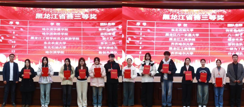 本次竞赛受到省内30余所本科院校数千余名同学的广泛关注和积极参与,历经校赛选拔,来自东北农业大学、哈尔滨师范大学等18所院校162名选手晋级省赛。经过一下午的激烈角逐,大赛组委会裁判长哈尔滨理工大学王京教授对评审工作进行了总结发言并宣布了比赛结果。最终决出省一等奖4项,二等奖8项,三等奖12项。我校三支参赛队伍,分别获得省一等奖1项,二等奖2项佳绩。