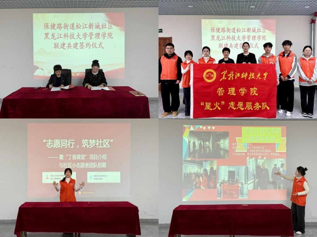 携锋共进,拓展服务阵地。深化校社协同育人,推动志愿服务走深走实、常态长效,管理学院与松江新城社区举行了共建签约仪式,携手打造志愿服务实践基地,进一步畅通校社联动渠道,为青年学子参与基层实践、服务社会民生搭建坚实平台。志愿者们还依托“丁香课堂”特色志愿项目,面向社区儿童开展学业辅导、兴趣培养等暖心服务,精心打造趣味VR科普、“3・15”安全小卫士等主题活动,用温暖陪伴守护童心,用实际行动彰显青年担当。与此同时,学院还举办了寒假社会实践表彰大会,系统总结寒假社会实践成效与优秀志愿服务典型成果,以榜样引领带动更多青年学生投身实践、奉献社会。