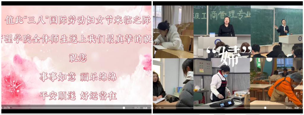 影绘谢忱,在师生共鸣中厚植教育温度。倾情制作“三八”国际劳动妇女节主题视频,生动勾勒出女性力量在不同岗位上默默奉献的点滴瞬间,赞美她们在平凡岗位上书写的不凡坚守。同时,管院学子以板报传情,以鞠躬致谢,不仅深刻真挚地向老师献上节日祝福,更让尊师重教的优良传统在校园里生根发芽。这一声声真切的问候、一份份质朴的敬礼,都将化作温暖的师生连接,让教育的温度在躬身之间悄然传递。
