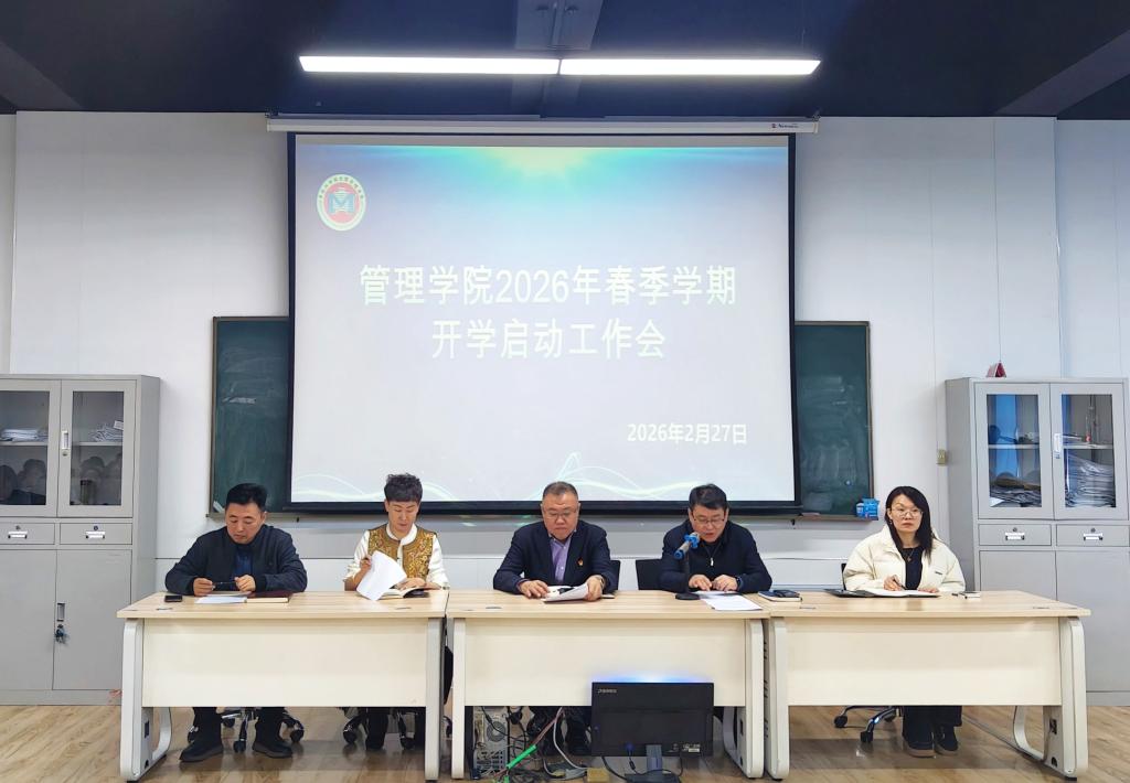 为深入贯彻落实党的二十届四中全会和学校党委二届十次全体会议、二届三次教职工代表大会暨2026年度工作部署会议精神,进一步明确学院新学期工作目标,统筹推进各项工作有序开展,2月27日下午,管理学院在ERP教室召开了2026年春季学期开学工作启动会议。学院领导班子成员以及全体教职工精神饱满、齐聚一堂。会议由学院党委副书记徐海英主持。